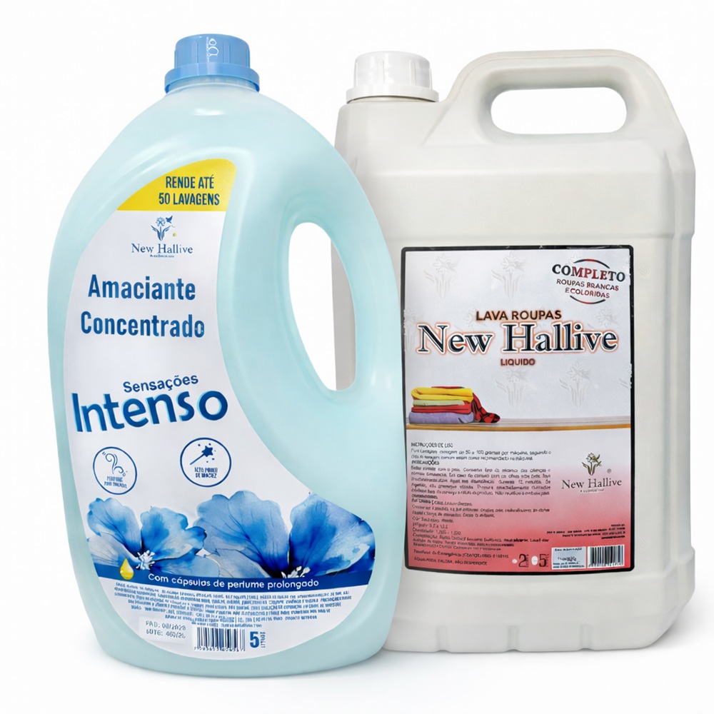 Garanta roupas limpas, macias e com perfume prolongado com o Kit New Hallive, ideal para quem busca rendimento, eficiência e fragrância premium no cuidado diário das roupas.