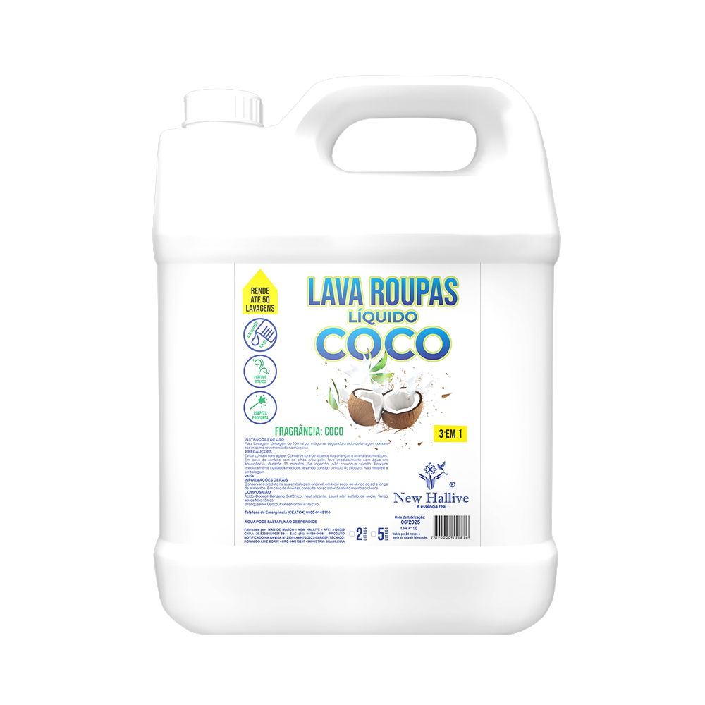 Perfeito para o uso diário em lavadoras ou na lavagem manual, o Sabão Líquido de Coco New Hallive oferece ótimo rendimento e performance, sendo uma escolha inteligente tanto para o lar quanto para lavanderias e comércios.